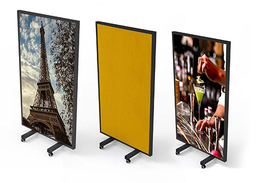 La base è girevole e a scomparsa, con piedini o ruote regolabili per adattare i pannelli anche a pavimenti antichi o sconnessi.Lo spessore di soli 4,5 cm li rende poco ingombranti e facili da riporre, anche in spazi limitati.