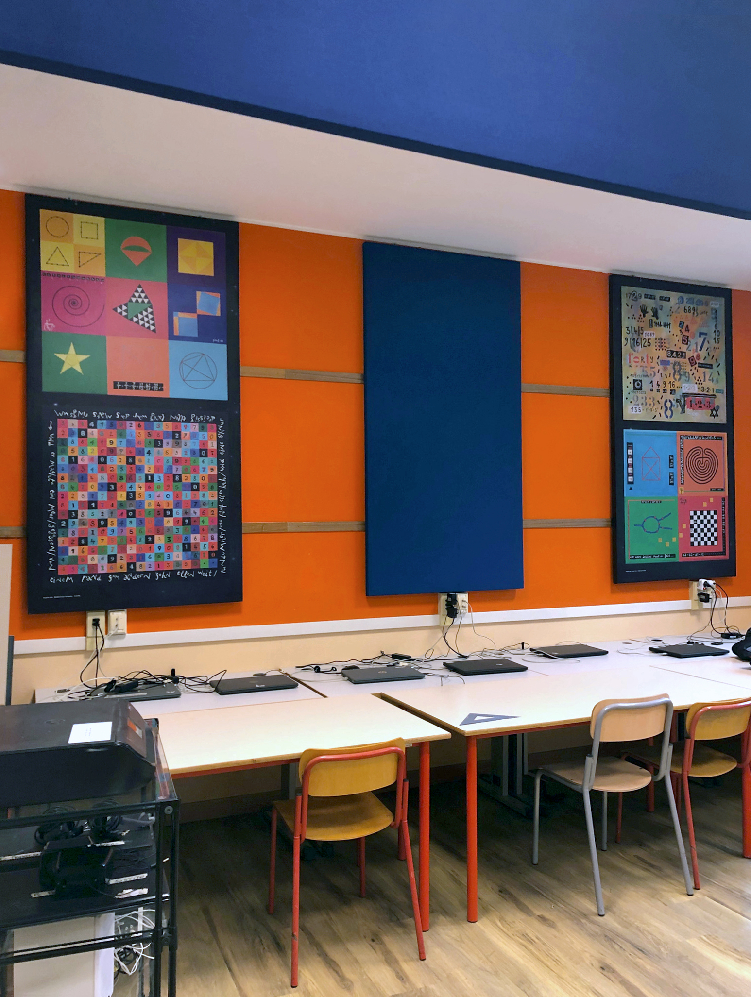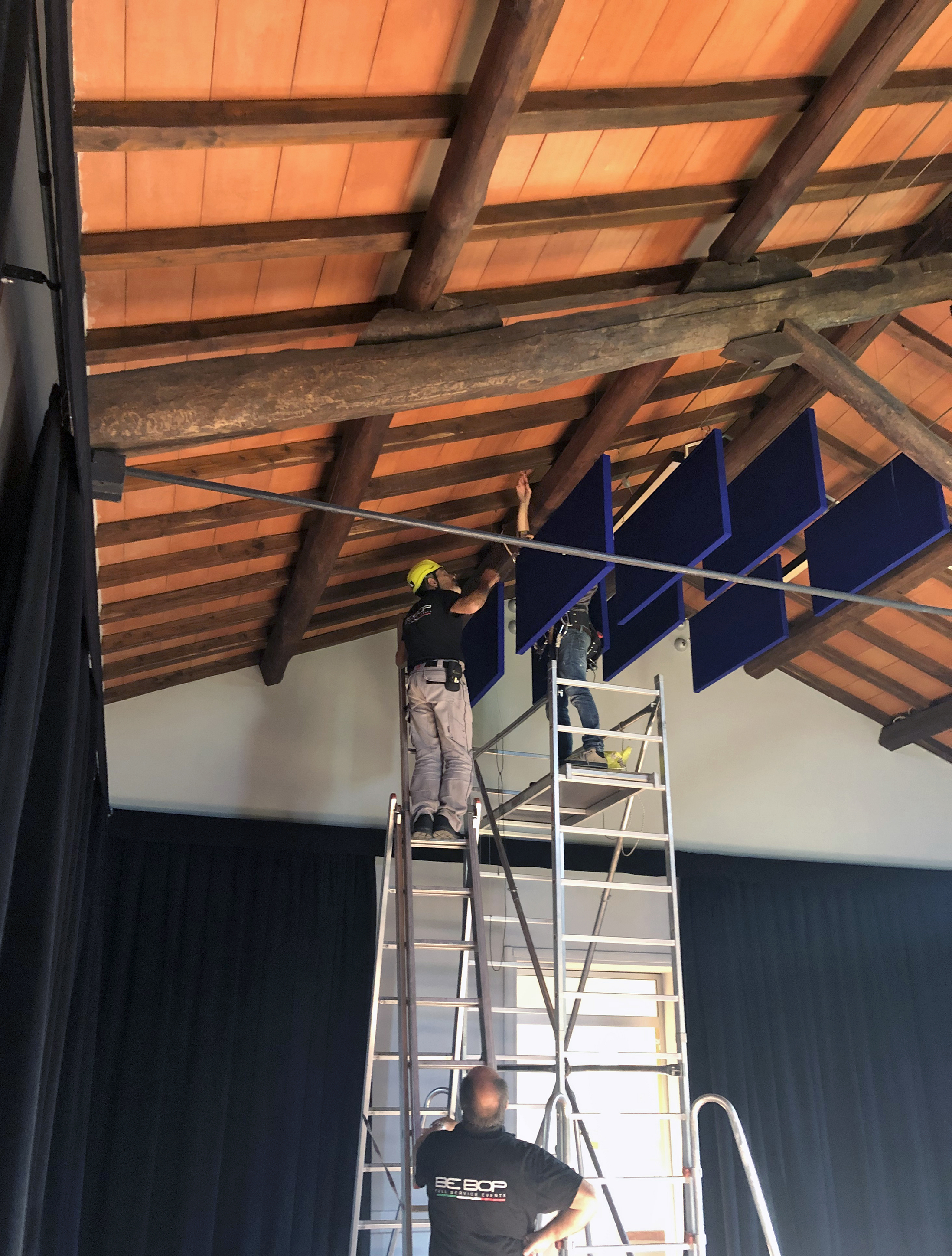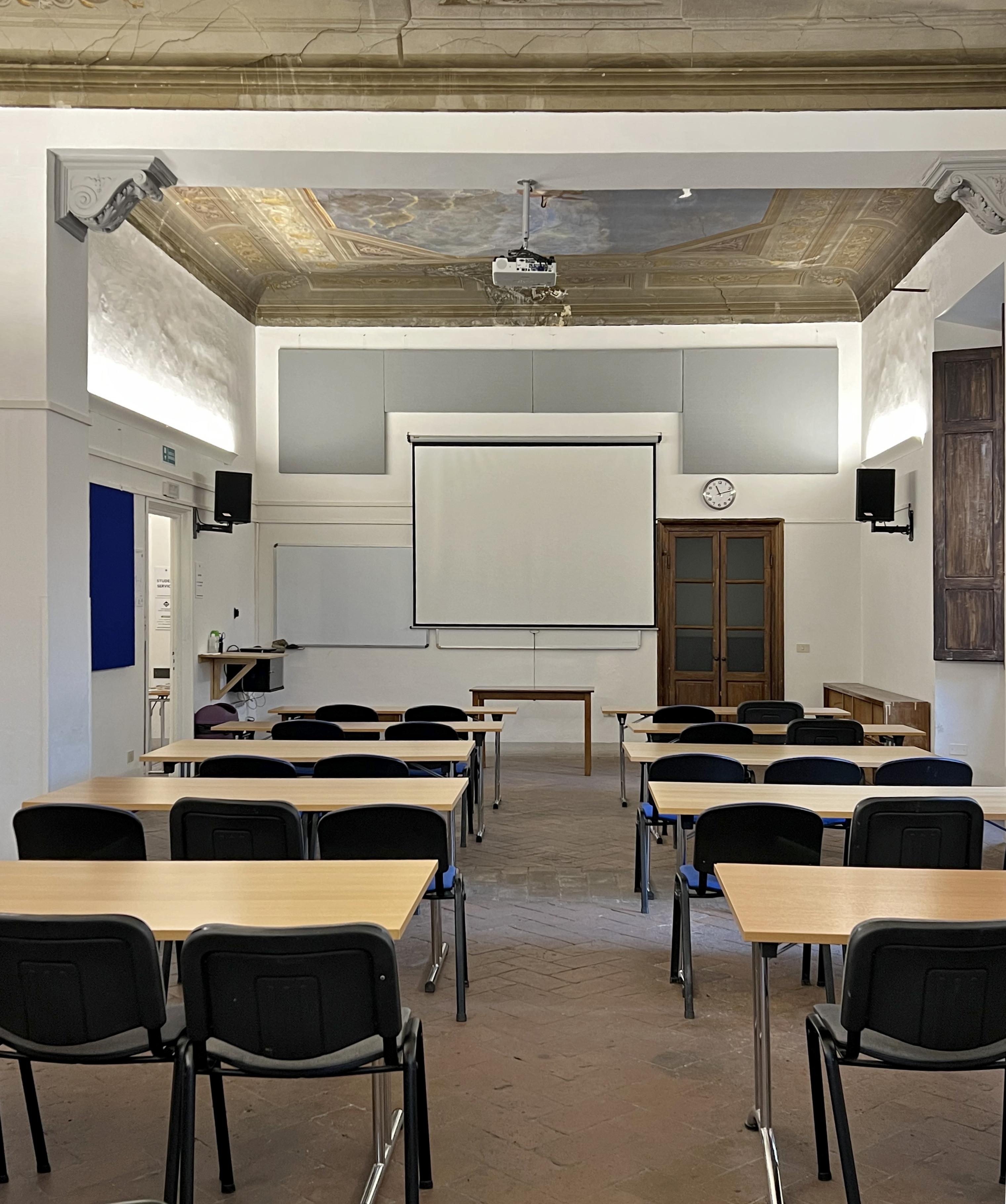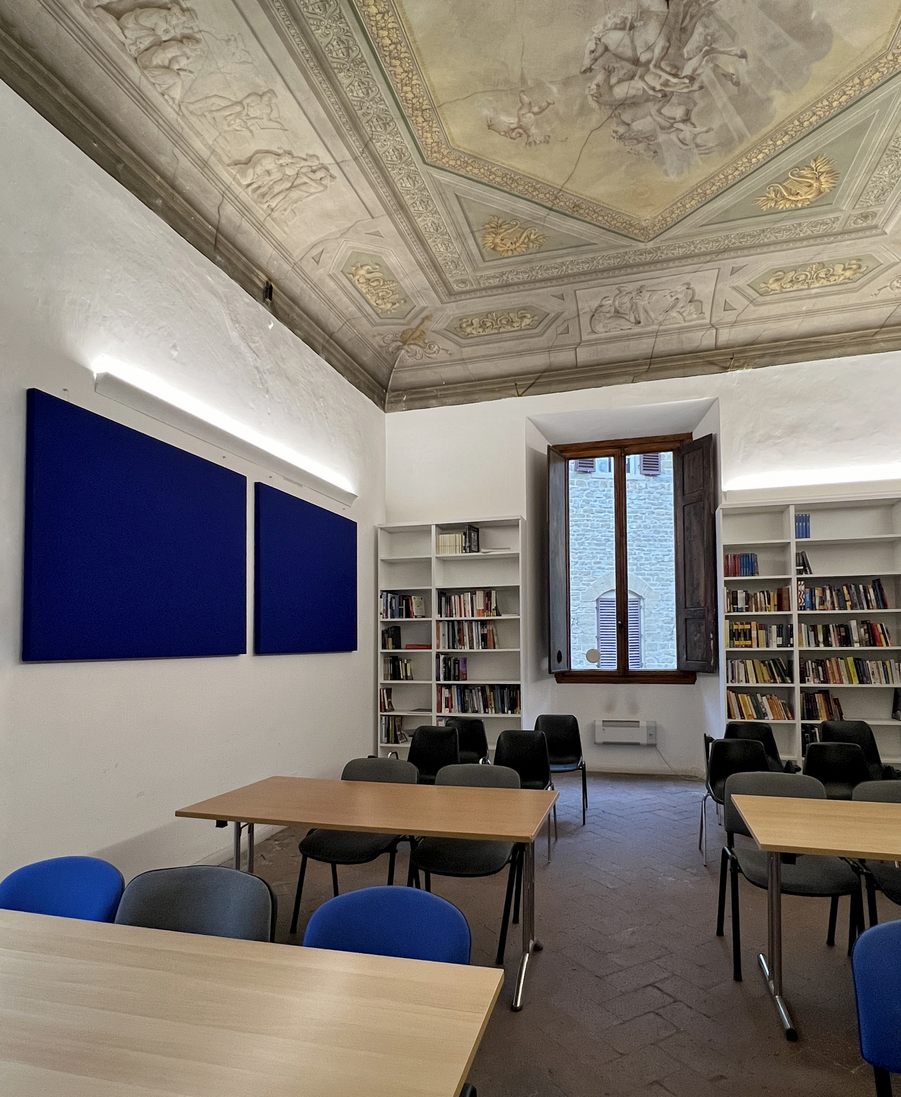 Realizzazione e installazione di pannelli fonoassorbenti per la scuola internazionale AIFS Global Education Center di Firenze.