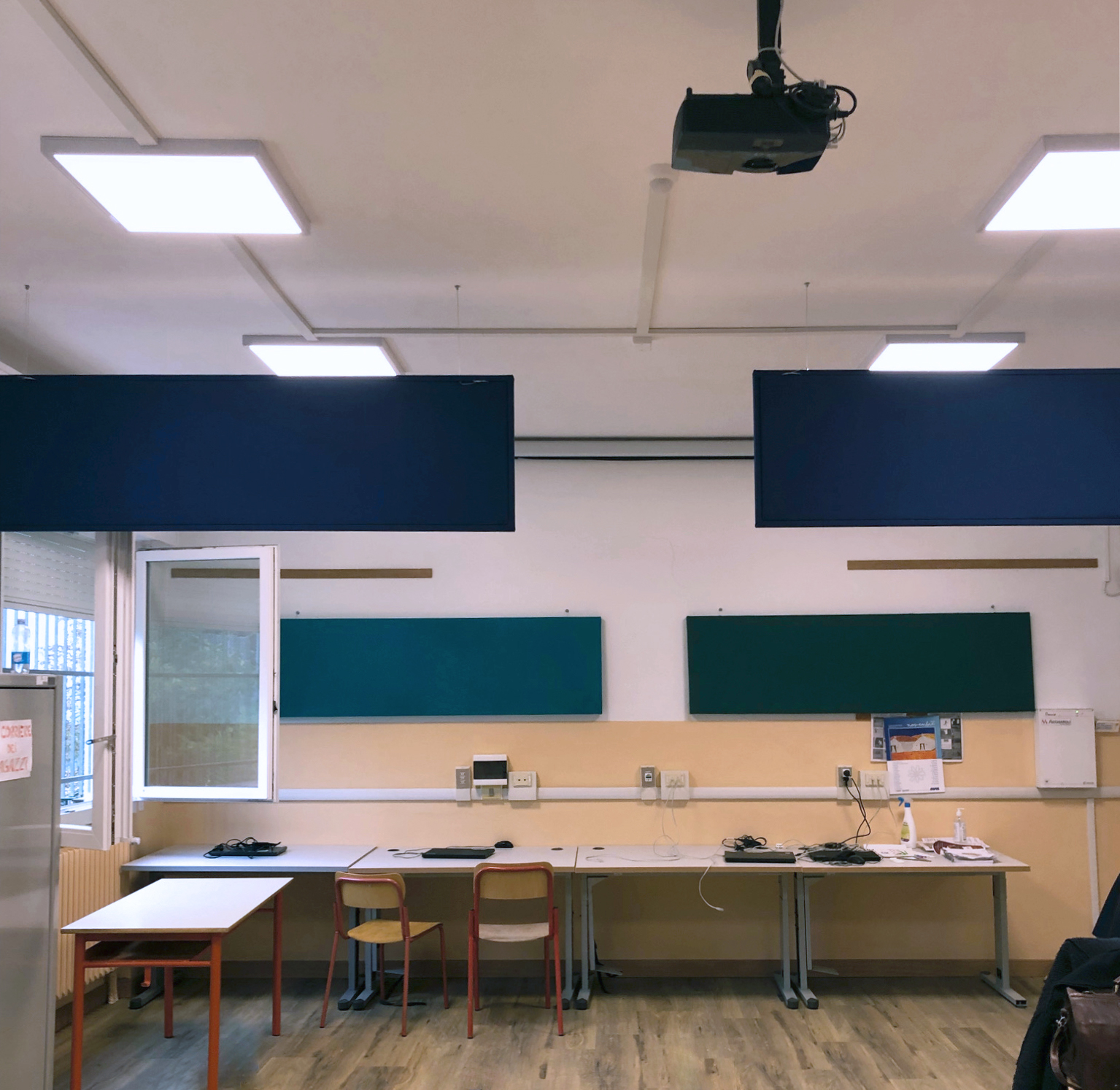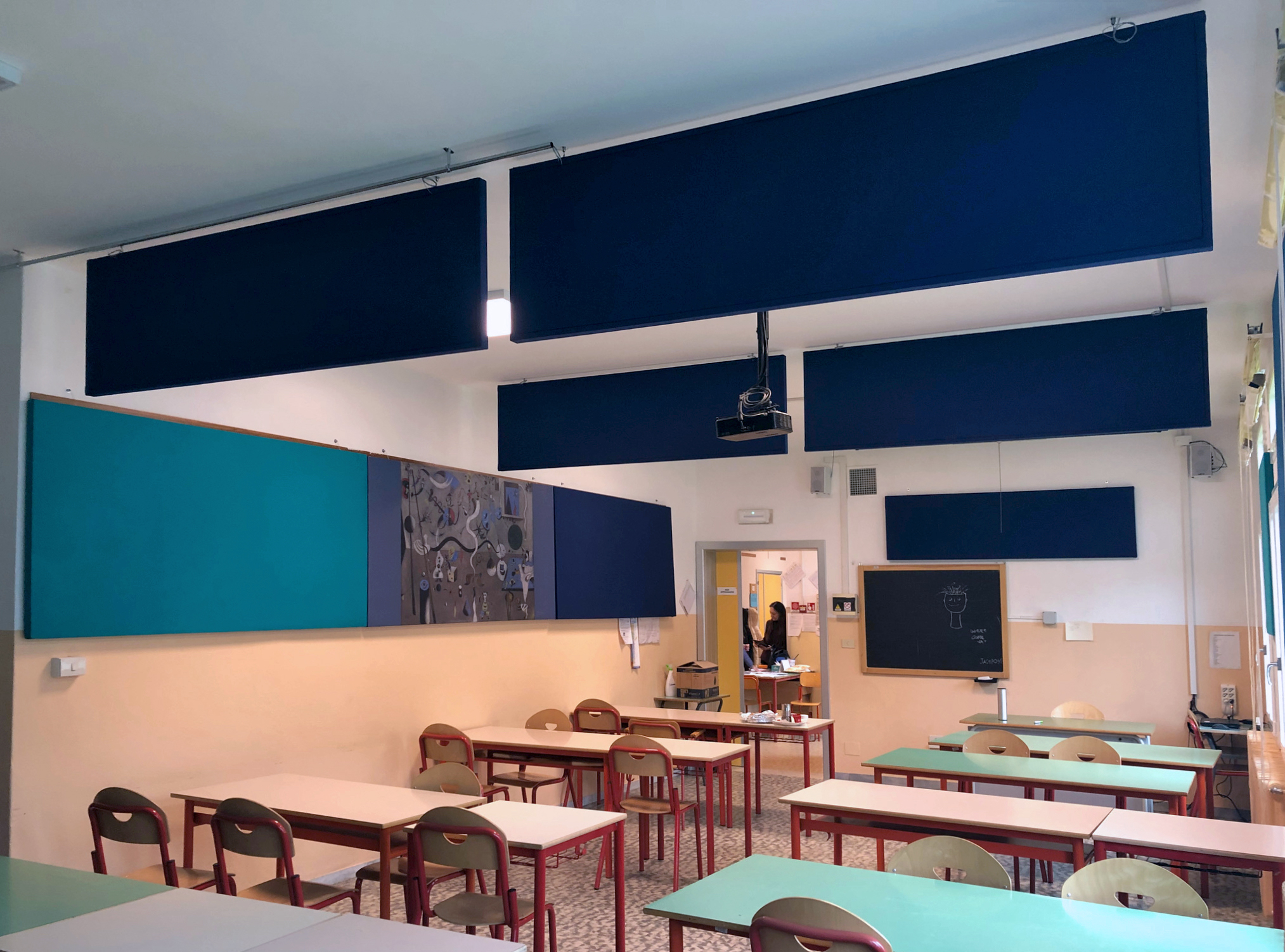Realizzazione e installazione di pannelli fonoassorbenti presso una scuola secondaria di primo grado.