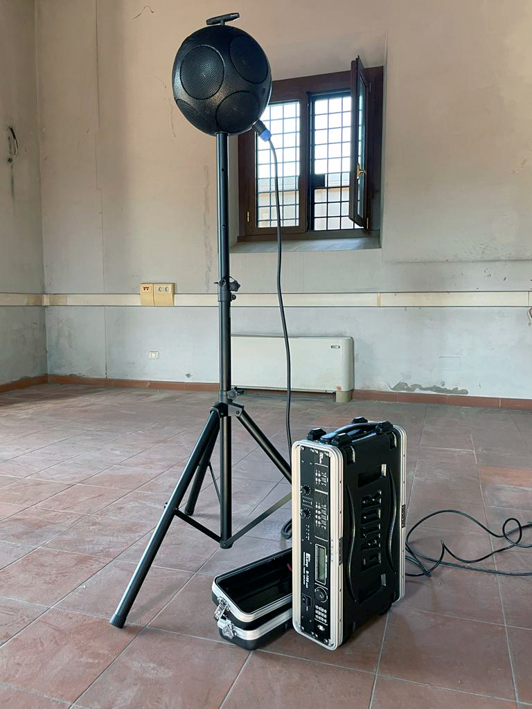 acustico 380 gr/m2, pannelli fonoassorbenti installati a baffle, tappeto in moquette, porte fonoisolanti tutto vetro).